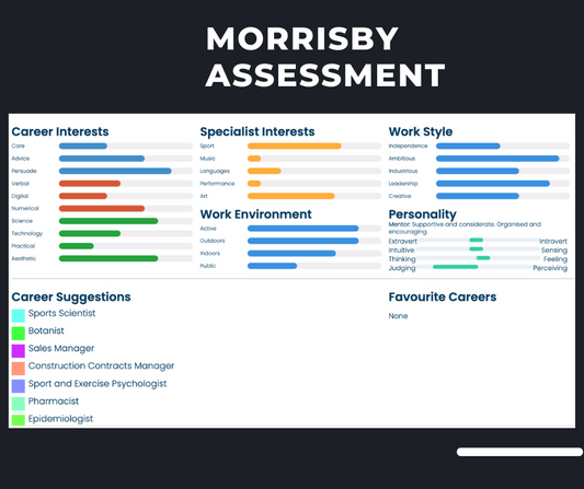 The Morrisby Careers Profile is one of the world’s leading career-based assessments for Career Guidance. Established in 1967, Morrisby career guidance products are trusted in over 1,000 schools throughout the world. The powerful algorithm tests aptitudes, interests, personality and working preferences and delivers a helpful list of potential careers.